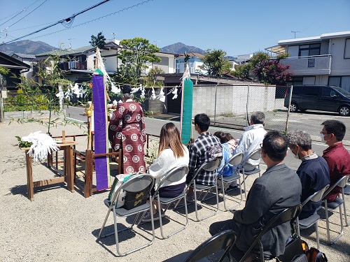 秦野市の注文住宅N様邸、お天気にも恵まれて無事に地鎮祭を迎えることが出来ました。