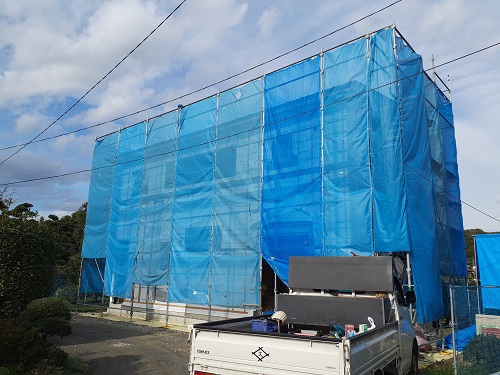外部はALCパワーボードを施工する前の通気層の工事まで終えました。