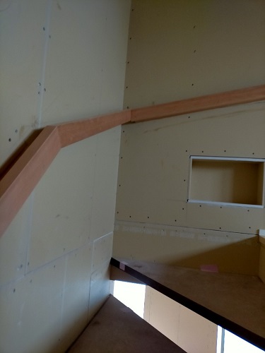 壁、天井ともに下地材も張られ、各お部屋の雰囲気が分かるようになりました。