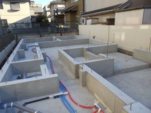 基礎工事完了後には、水道の内部給水・排水工事が行われました。
