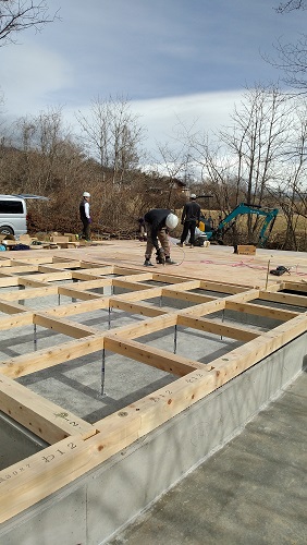 基礎工事も完了し、土台や床下地を施工しています。