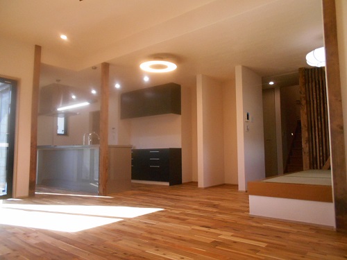 床養生も外れ、無垢の床材がとっても心地いい肌触りです。