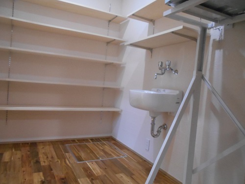 ランドリースペースには汚れものも洗える、スロップシンクを設置しています。