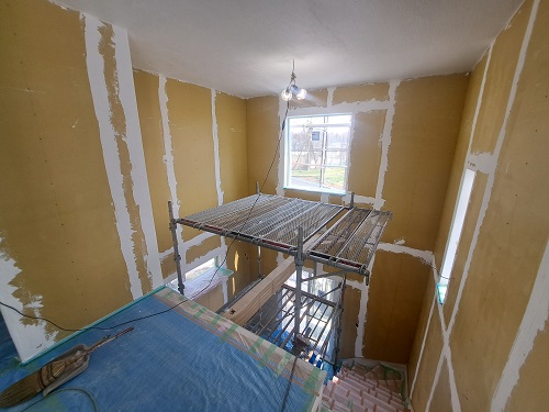 相模原市の注文住宅、グランドピアノが弾けるS様邸ですが、大工工事を終え、いよいよ左官工事に入りました。