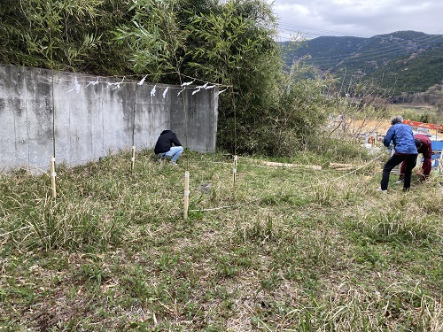 先ずは着工に先立ち、建物の配置を出す、地縄張りを行いました。