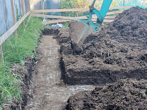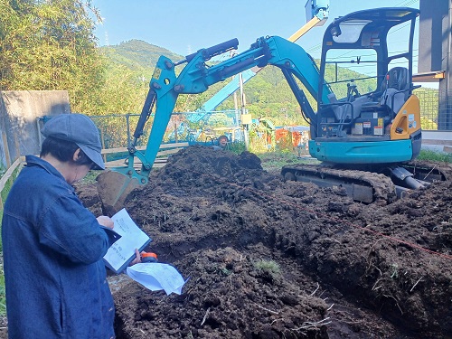 基礎の立ち上がり部分に合わせて掘削をする、根切り作業が行われています。