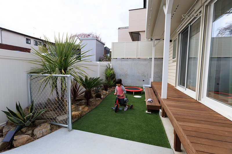 プライベートガーデンはアウトドアリビングとして、天気のいい日はダイニング、休日のBBQや夕涼みしながらお酒を愉しむ場として…さまざまな暮らしのシーンに活用出来ます。