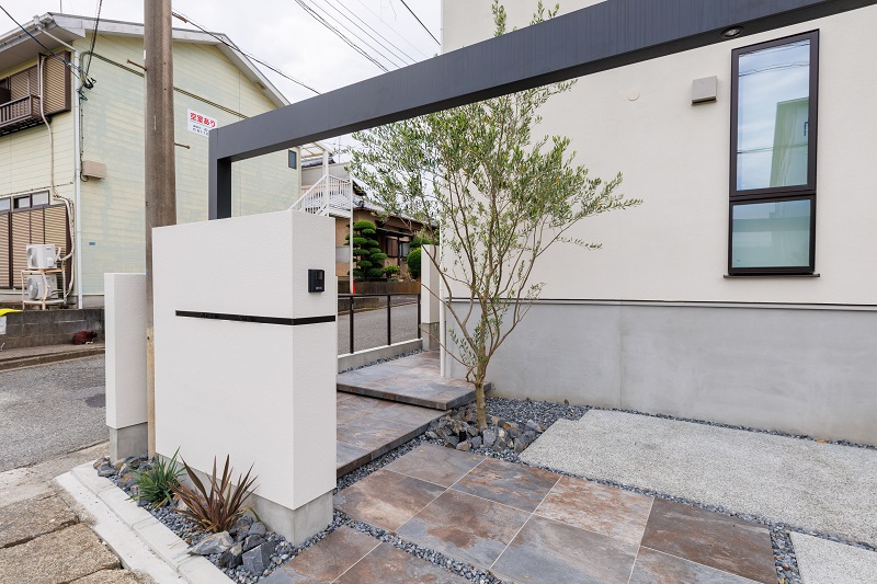 玄関までの距離を一定の間隔で設けることで、訪れるひとのワクワク感を演出しています。