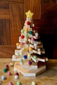 大工さんに習って、親子で天然木のクリスマス用ミニツリーを作ります。