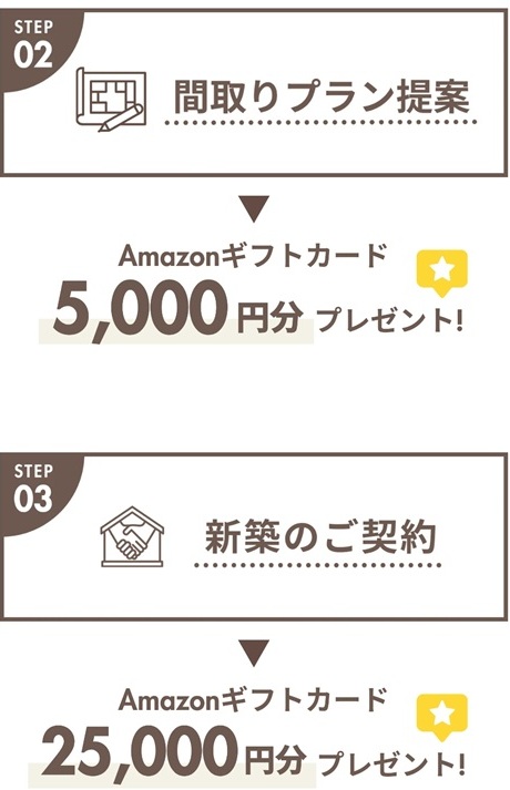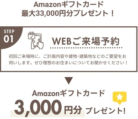 WEB予約をされた上、初めて本社ショールーム・横浜港北モデルハウス・現場見学会に、ご来場いただいた方に、Amazonギフトカード3,000円分をプレゼント!