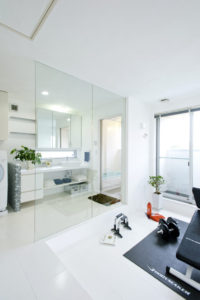 上の写真では、洗面化粧室に隣接したフィットネスルームを設けています。毎日健康で過ごすためには、日々のフィットネスも欠かせません。毎日のことだから気持ち良く身体を動かしたいですよね。