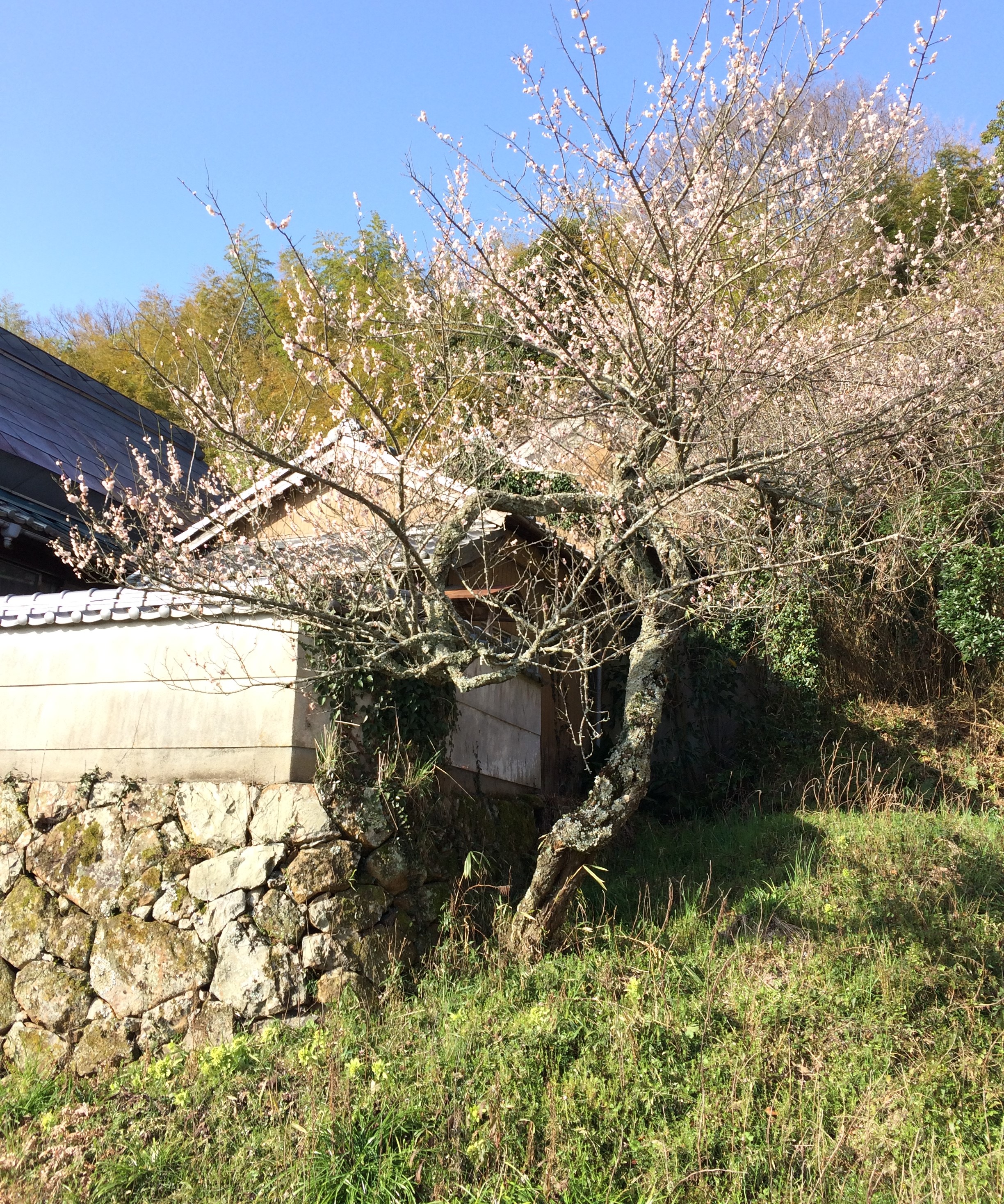 ※梅の木の下の若草色の塊が「ふきのとう」です