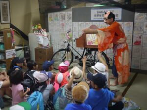 大きい子は小さい子の買い物カゴに入っている駄菓子の計算など、よくお世話をしてあげていました。大町社長はいつも「子どもの笑顔は希望の証」と仰っています。この日も変装して「だがしがとびだす紙芝居」おじさんになったり、水鉄砲遊びではすすんで的になってくれたり…。子どもたちは思いっきり笑い、思いっきり遊んでいました。