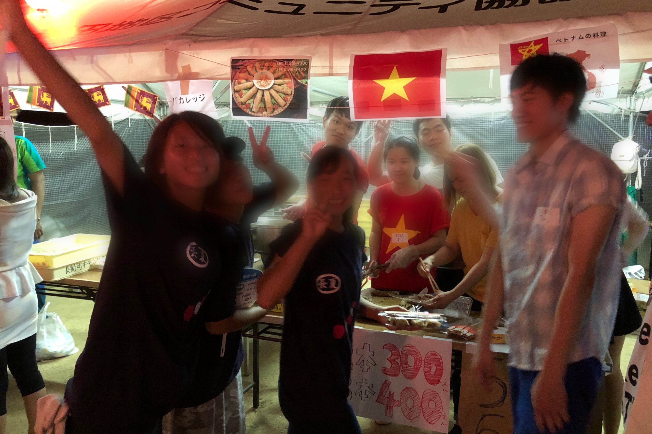 スリランカとベトナムからの留学生による故郷の味の屋台。中学生もボランティアとして活躍。