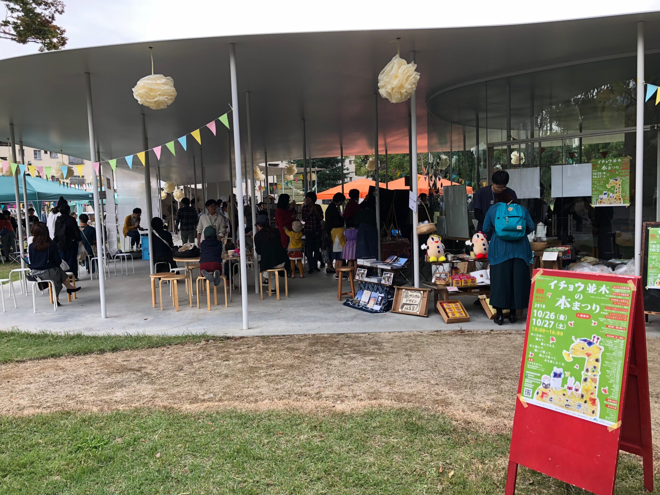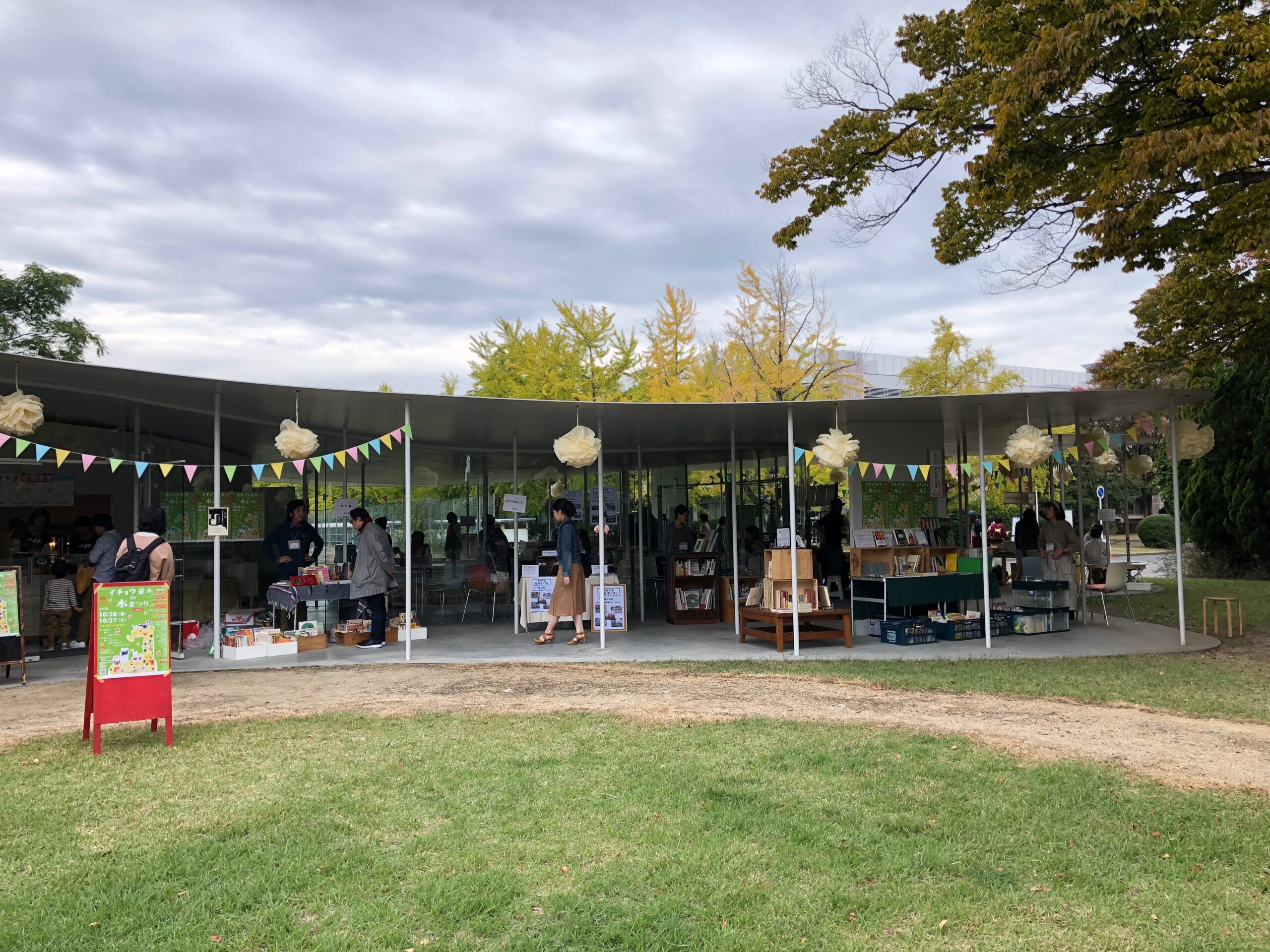 こちらの敷地内にあるカフェでは、文化度が高くて洒落たイベントが度々開催されるのですが、毎年イチョウの葉っぱが色づくこの季節に、日本各地のセレクト書店やコンセプトがマッチしている食や雑貨、ワークショップを扱うブースなどが並ぶ「イチョウ並木の本まつり」が開催されます。