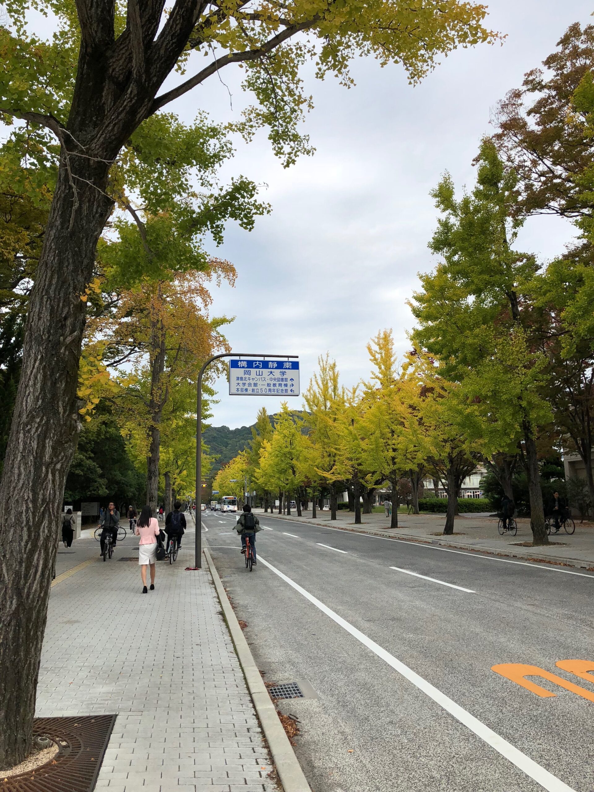我が家の周りでは、「紅葉の季節」という気分にはまだ浸れないのですが、先日お邪魔しました岡山大学のイチョウ並木は色づき始めていました。