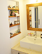 ※手作り感のある造作洗面化粧台は、注文住宅会社だからこそできる自慢の出来栄え。大きく差別化を図れる要素の一つ。