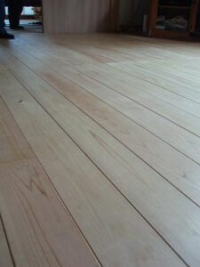 柱・梁は杉、床板は桧、腰板は杉を使用していました。実際に生活をされているお宅でしたので、感想をお聞きしてみると、「無垢の床は本当に暖かいですね。あと、お客様みなさんに木の良い香りがすると言われます。」と、大変喜んでいらっしゃいました。