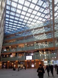 中に入ると、1から5階まで吹抜けていて、ガラス張りの天井から沢山の光が降り注いでおり、