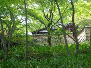 電力王と呼ばれた実業家、松永安左ヱ門が晩年を過ごした老欅荘がある松永記念館。 石で造られた階段を登ると、老欅荘が見えてきます。