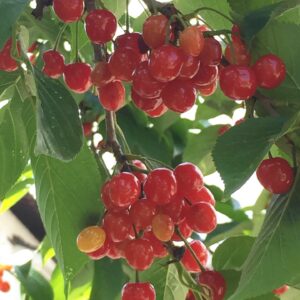 長女の誕生を記念して植樹したサクランボの樹が大きく育ち、今年もたくさんの実を付けました。