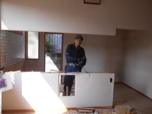 リフォーム工事中のH様邸にて、既存部分の解体工事奮闘中です。