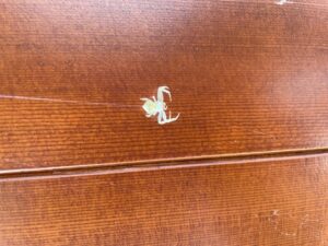 先日玄関のドアに白い蜘蛛を発見しました。