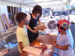 建築資材の廃材処分市、漆喰や木を使った工作、縁日、ミニ動物園やキッチンカーなど、地域のお店にもご協力頂き、大変ご好評を頂きました。