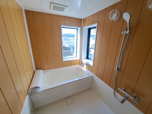 間もなく完成を迎える、秦野市内で建築中の注文住宅、K様・N様邸の“富士見風呂”。