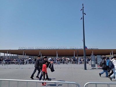 万博会場の地下鉄を降りて、さあ、ゲートへ向かいます!