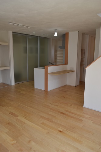 無駄のないすっきりとしたLDKです。壁・天井がしっくいで優しい雰囲気が出ていますね。