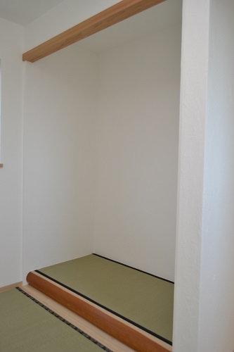 曲面を描く床框は、解体したご実家の床柱です。杉の磨き丸太を床框に使うのは極めて珍しいですが、