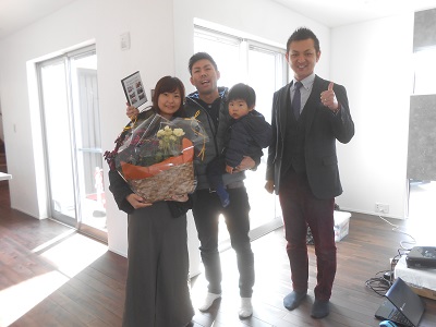 S様、この度は誠におめでとうございます。弊社で2年半ほど前にご自宅を建築されたW様よりのご紹介でのご縁。