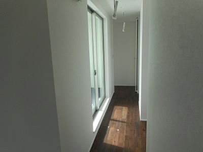バルコニーに面した2階のホールはサンルーム兼用。雨の日や花粉の時期は勿論ですが、部屋干や仮かけにも重宝します。