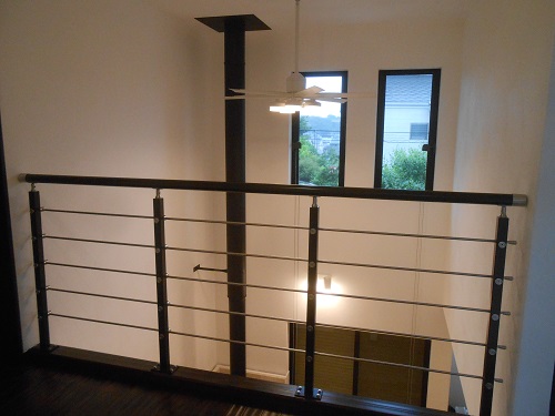 バルコニー手摺は、デザイン面と通風性確保の両面から、木製格子としました。