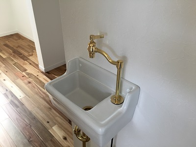 玄関に設置した手洗器。帰宅直後に手を洗えとても便利です。