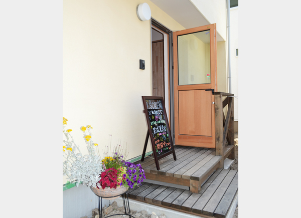 店舗入り口はデッキから。
