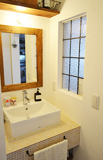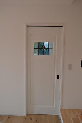ステンドグラスがお好きなS様と、取り付ける位置を相談したのも楽しい思い出です。洗面コーナー横の壁と、玄関からリビングに入る建具に取り付けました。