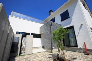 秦野市・注文住宅実例 ガレージ上の屋上を利用し解放感抜群2階リビングの家